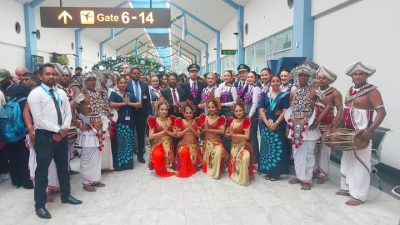 The arrival was celebrated with a traditional water salute, creating a spectacular sight for passengers and crew. They were further delighted by Sri Lanka’s trademark hospitality — greeted warmly and escorted through a vibrant cultural dance troupe, which showcased the island’s rich traditions and colorful heritage. Souvenirs were presented to mark the occasion, leaving visitors with a lasting impression of Sri Lanka as a welcoming paradise.